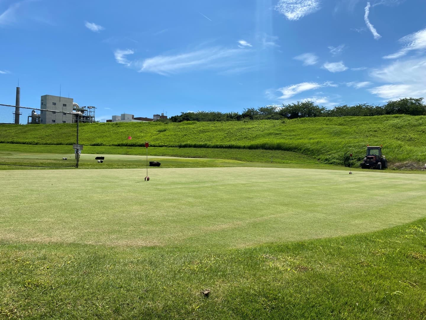 高麗芝と野芝が半々になっているため、フェアウェイ(高麗芝)とラフ(野芝)それぞれからのアプローチに近い感覚で練習できます。