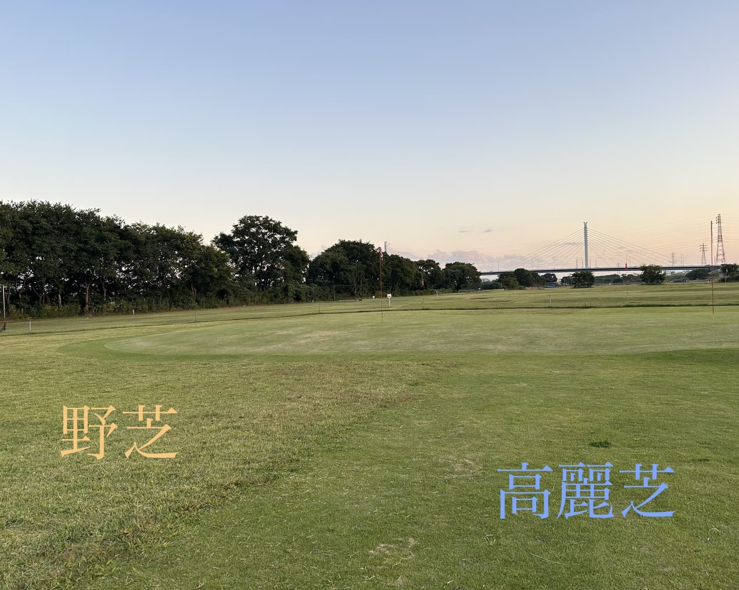 フェアウェイとラフの両方の感覚で練習できるよう、2種類の芝生の面で構成されています。